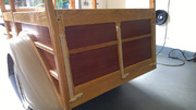 The owner of this lovely 1937 Dodge has carefully been restoring every part from the chassis up. It came to us for the final fabrication, fit and finish of the wood and is now looking better than ever. These old staion wagons were used exactly as that, a wagon to take people to and from the station. It is powered by a 217.8 cubic-inch six-cylinder engine of producing nearly 90 horsepower. There is a three-speed selective sliding gearbox and four-wheel hydraulic drum brakes. There are three seats which can accommodate up to seven passengers.