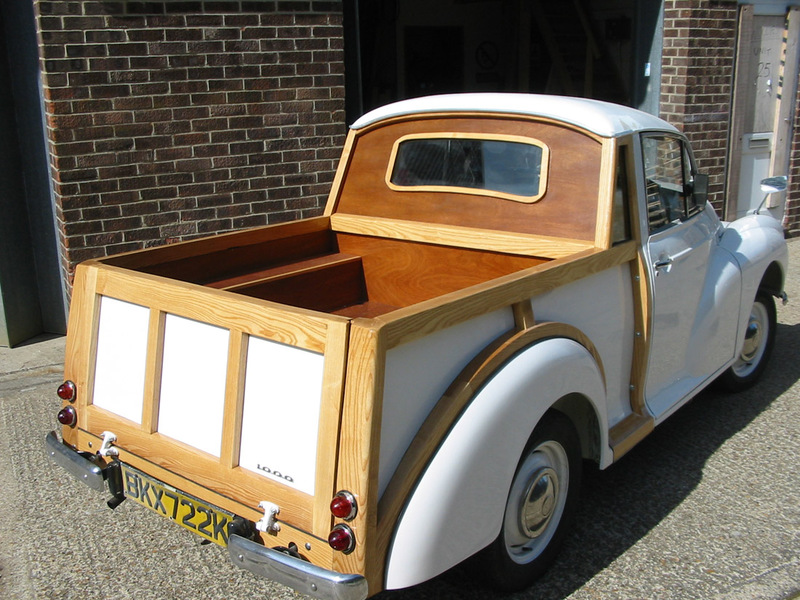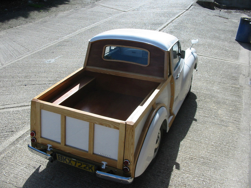 A completely stripped and restored Morris Pickup conversion in Glacier White.